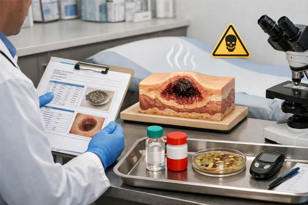اگر زخم شدید یا عمقی باشد، تستهای پیشرفتهتری مانند آزمایش خون برای رد سپسیس ممکن است لازم شود. تشخیص صحیح نوع باکتری، کلید انتخاب آنتیبیوتیک مناسب و افزایش موفقیت درمان زخم بستر را تضمین میکند.